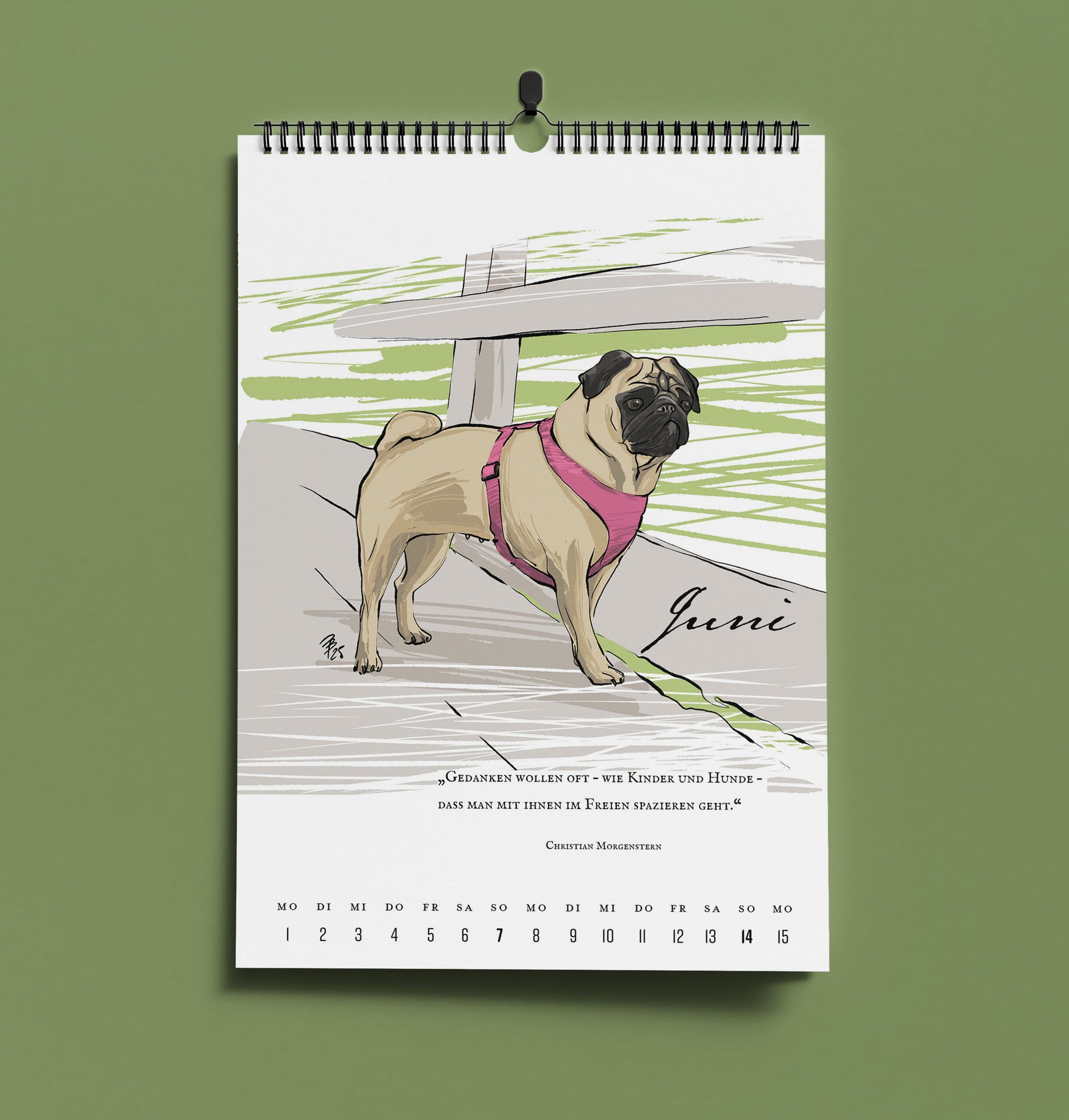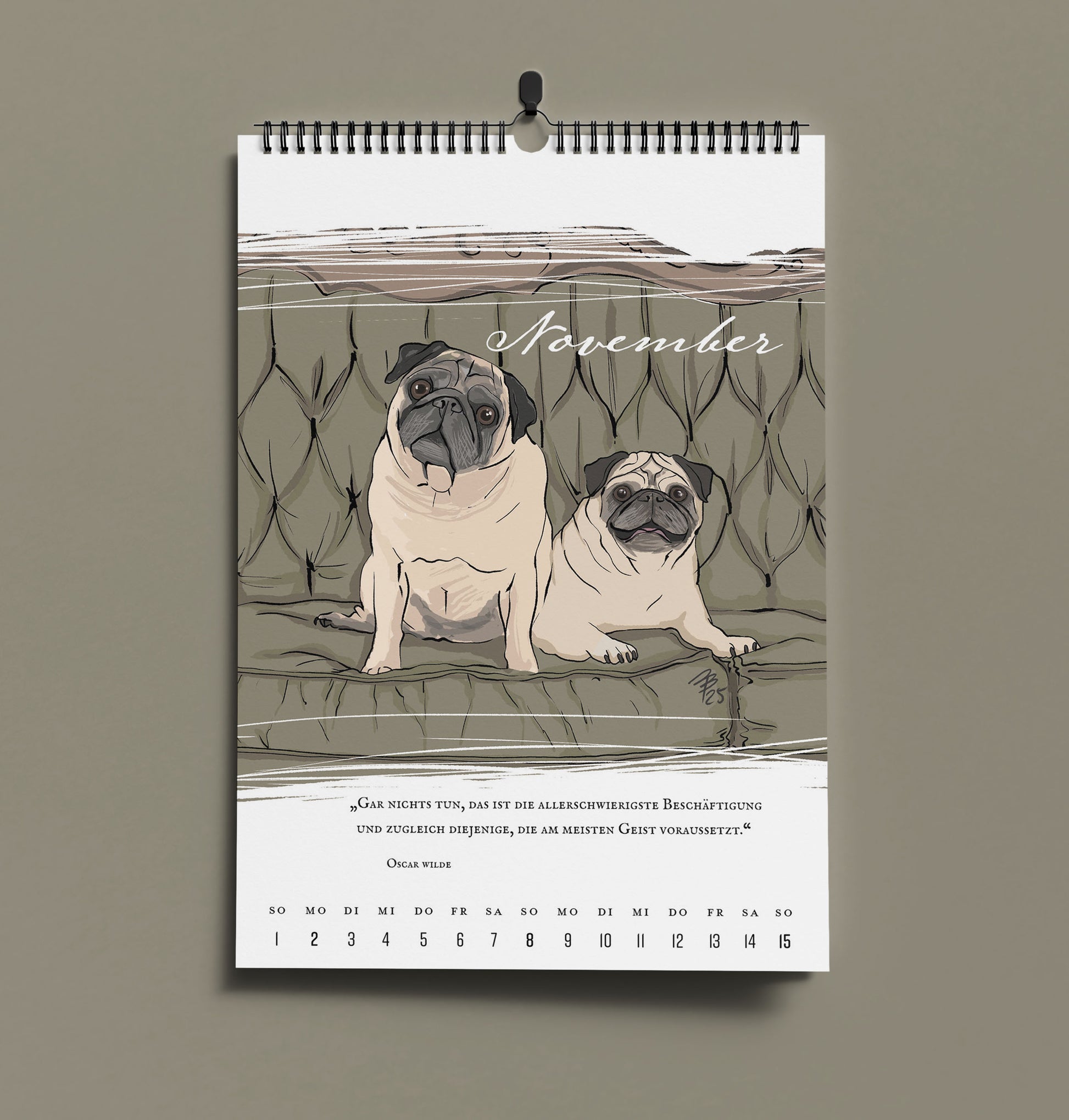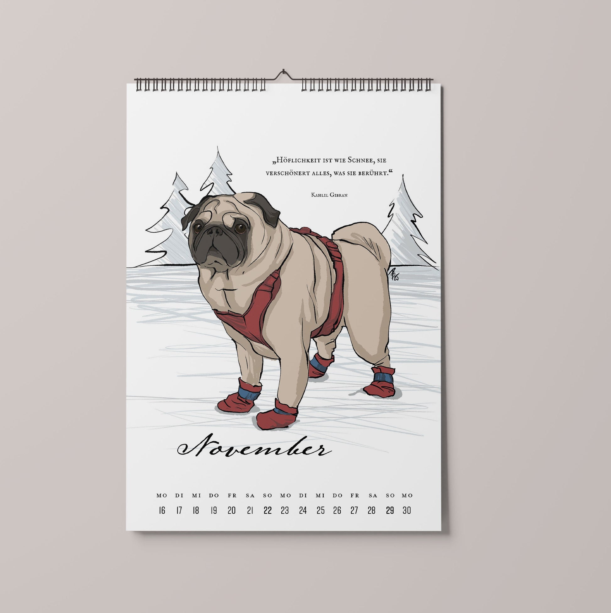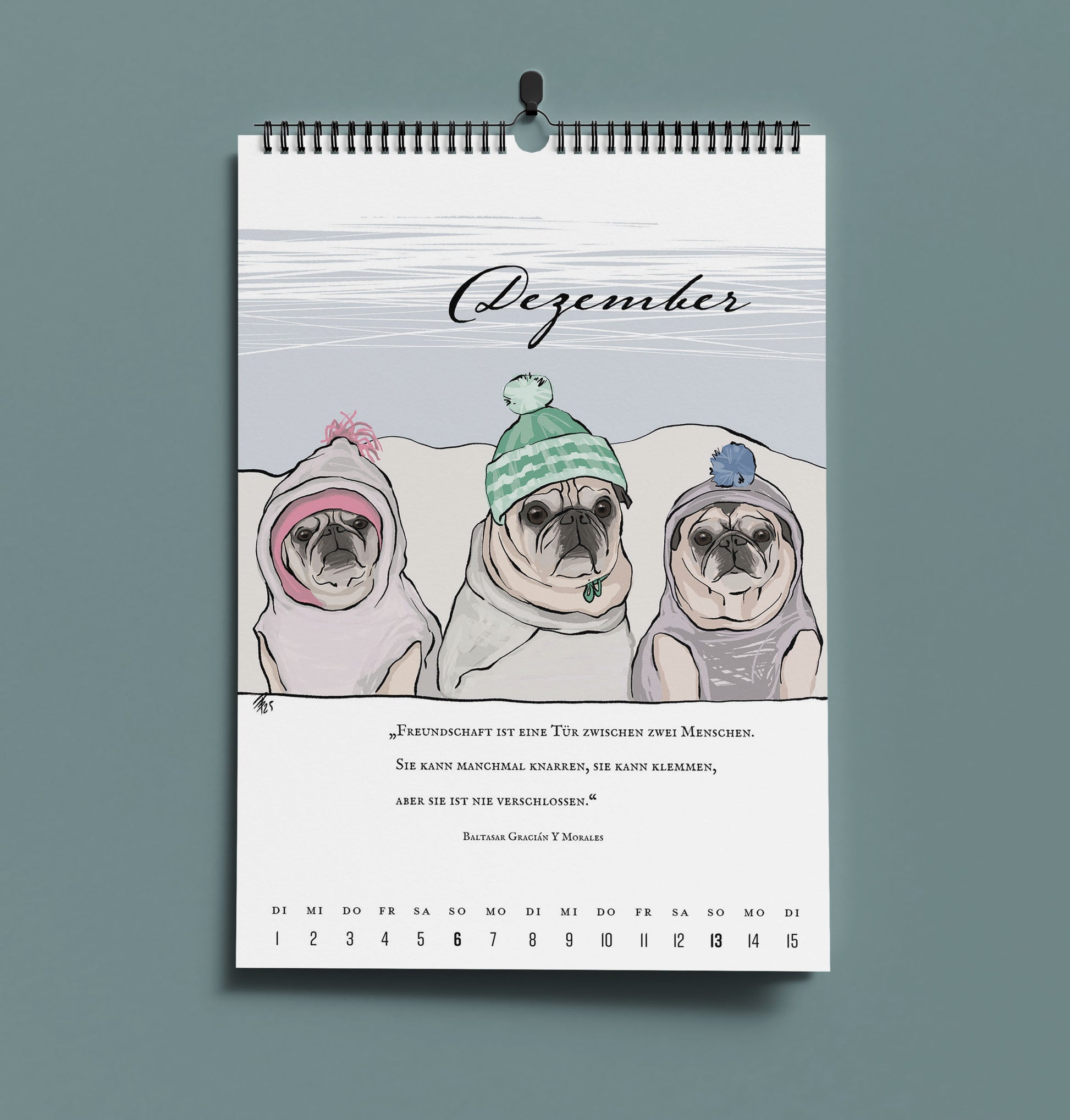 Mit 24 neuen Tuschezeichnungen vom Mops und seinen Freunden, Zitaten und Weisheiten führt dich unser literarischer Mopskalender durch das Jahr 2026.